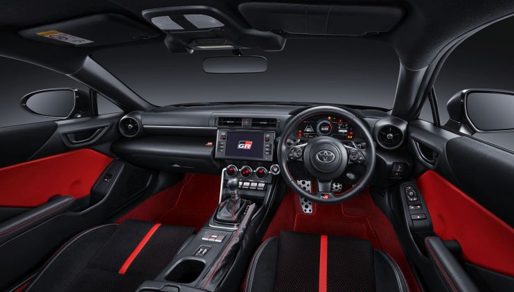 Dari sektor kabin, penyegaran terdapat pada Automatic Interior Light Off Function yang aktif ketika pintu dibuka-tutup, tuas lampu sein dengan pengunci saat dioperasikan dan jahitan pada bangku yang berubah dari merah menjadi hitam. Selanjutnya, New GR86 juga sudah disematkan T Intouch versi terkini yang memiliki akses internet.